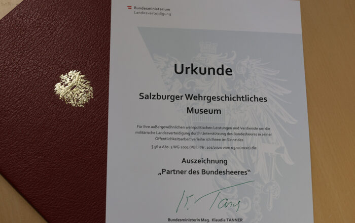 Unser Thema ist die Salzburger Militärgeschichte. Wir sammeln, präsentieren und dokumentieren alles, was damit zu tun hat: Bücher, Bilder, Uniformen, alte und neue Waffen, Landkarten, Munition, Vorschriften, Großgeräte wie Panzer, Kanonen und Fahrzeuge, Medien, Ausrüstung, Dokumente und vieles mehr – insgesamt weit über 13.000 Objekte. Einiges davon zeigen wir in drei Ausstellungssälen im Gebäude 21 der Schwarzenbergkaserne Wals und im Außengelände. Der zeitliche Rahmen reicht von der Römerzeit bis in die Gegenwart, wobei das Bundesheer der Zweiten Republik einen besonderen Raum einnimmt. Wir wollen einen Beitrag dazu leisten, dass dieser Teil der Salzburger und der österreichischen Geschichte wissenschaftlich erforscht wird und im gemeinsamen Gedächtnis erhalten bleibt.